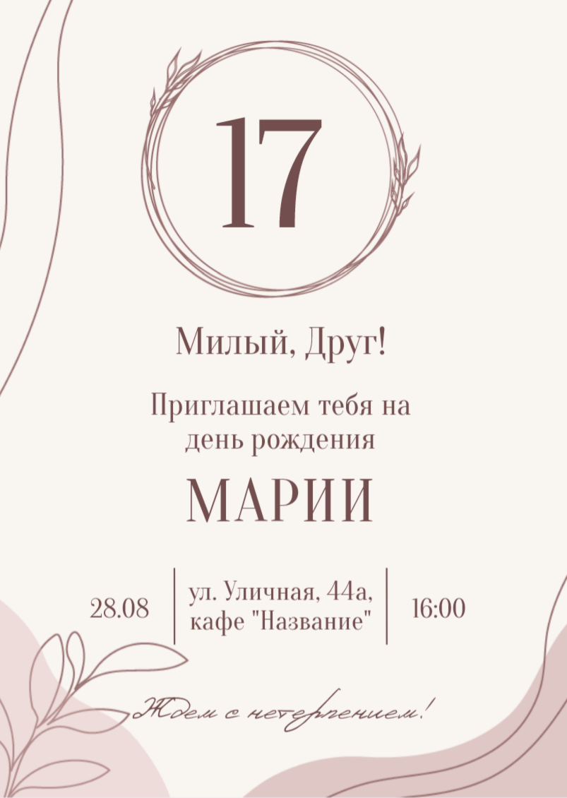 Выберите наиболее удобный для вас способ поделиться радостью и пригласить близких и дорогих людей на этот особый день.