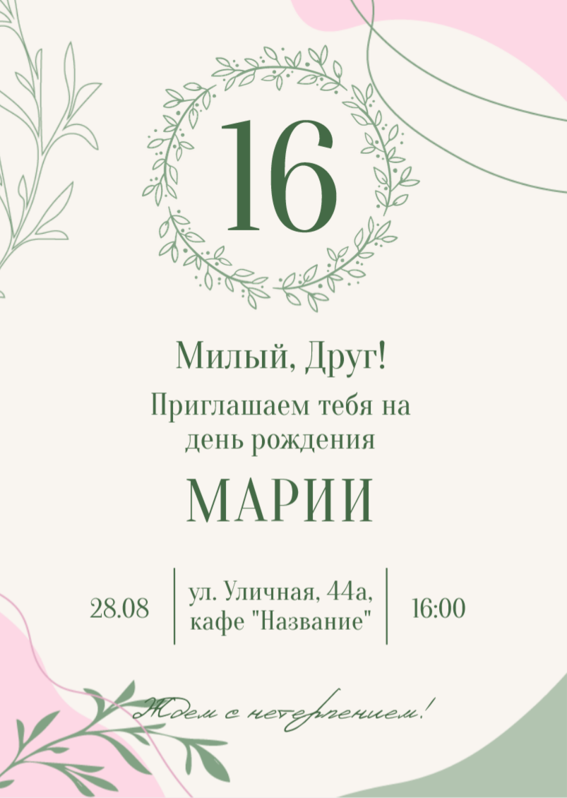 Выберите наиболее удобный для вас способ поделиться радостью и пригласить близких и дорогих людей на этот особый день.