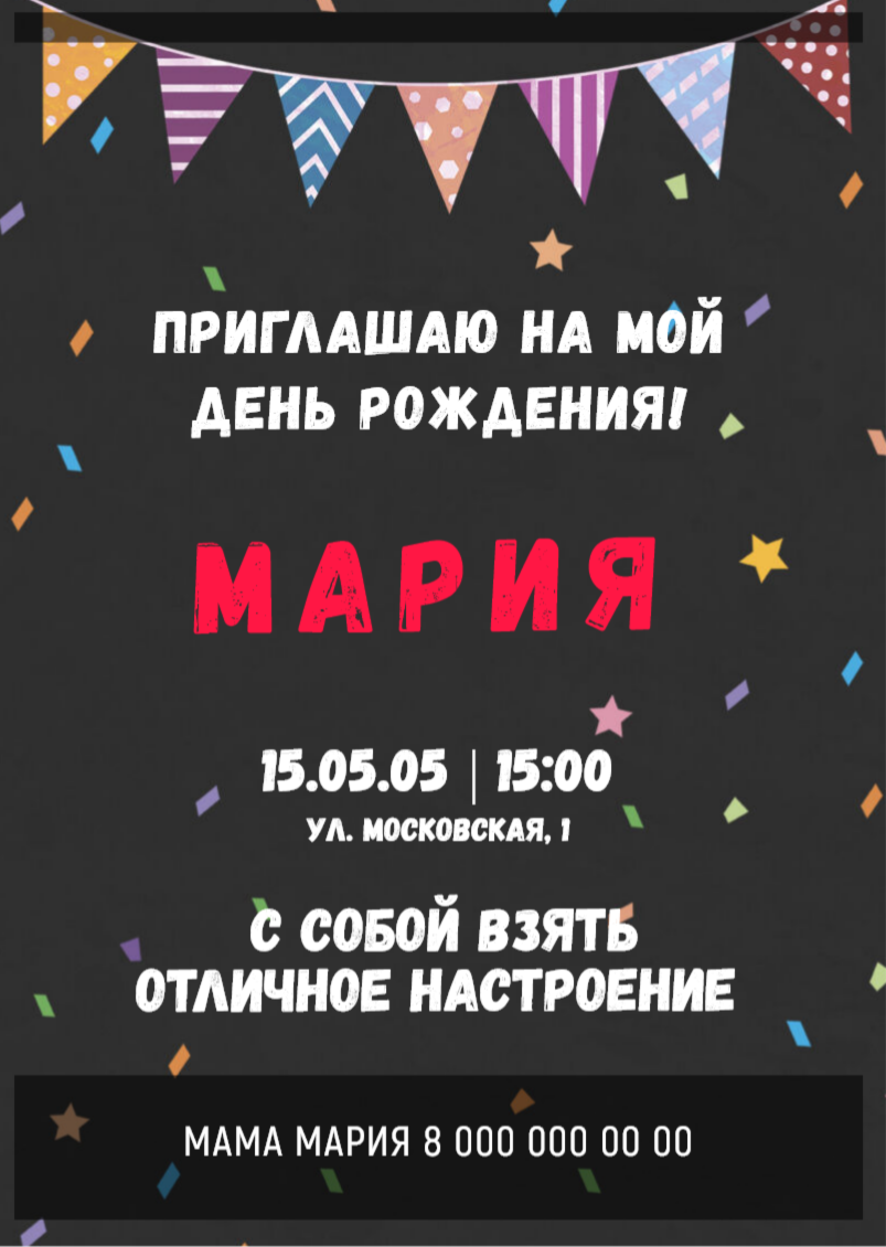 Цифровой вариант приглашения на День рождения, будет готов к отправке в мессенджерах или по электронной почте для самостоятельной печати или приглашения гостей в электронном виде.