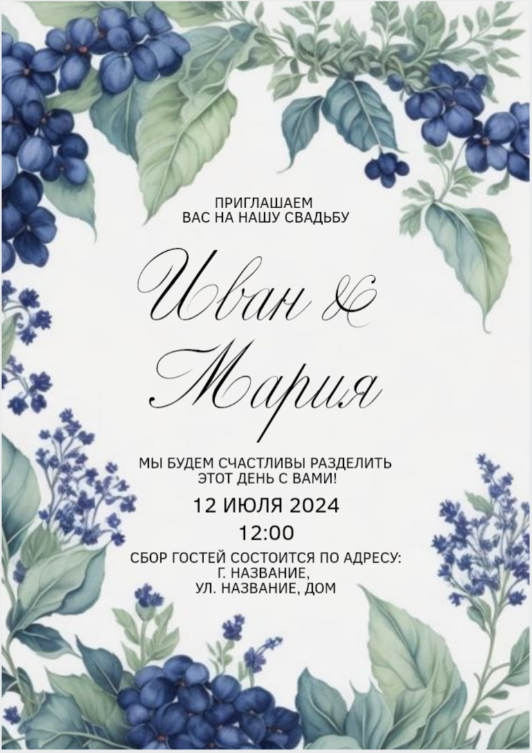 Выберите наиболее удобный для вас способ поделиться радостью и пригласить близких и дорогих людей на этот особый день.