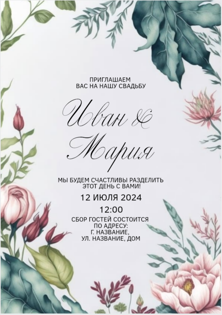 Выберите наиболее удобный для вас способ поделиться радостью и пригласить близких и дорогих людей на этот особый день.