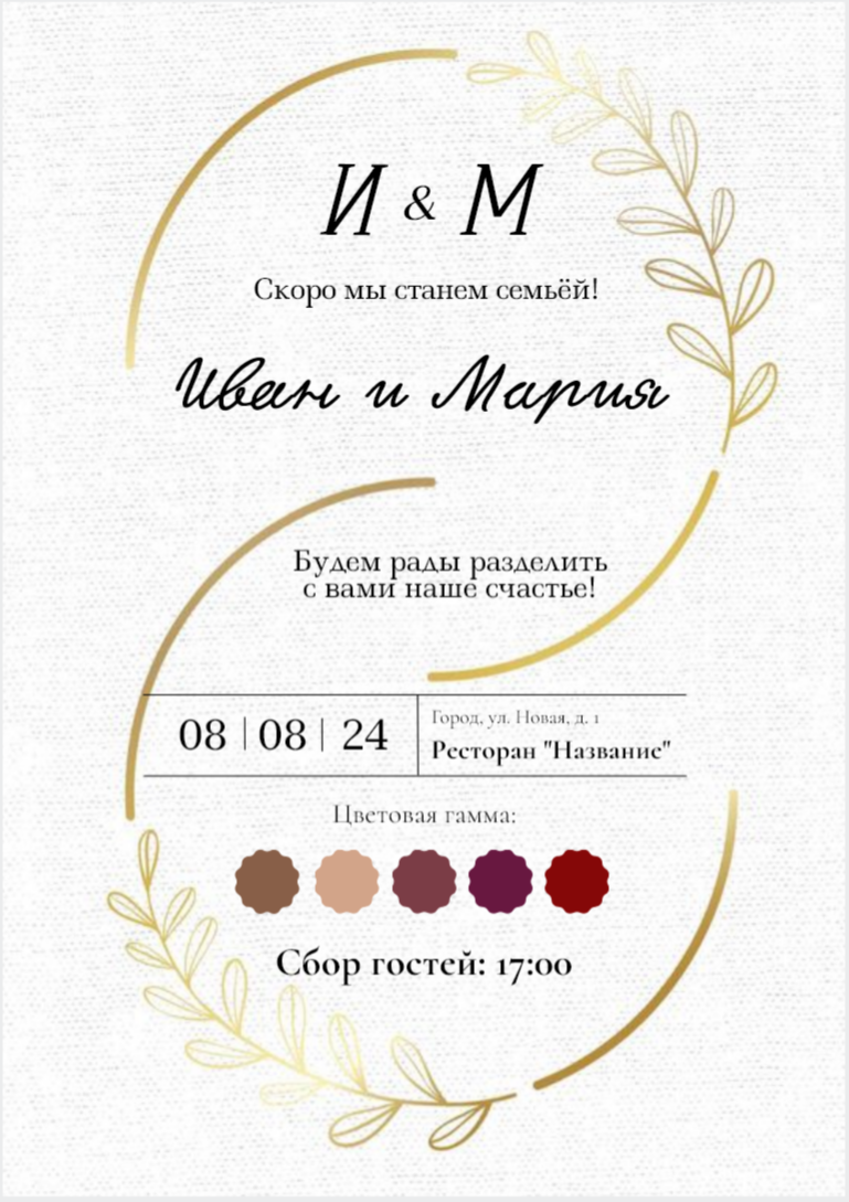 Выберите наиболее удобный для вас способ поделиться радостью и пригласить близких и дорогих людей на этот особый день.