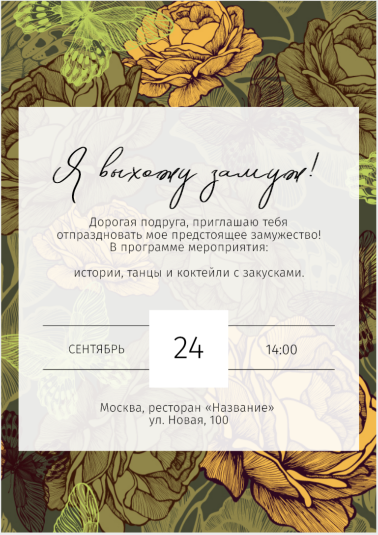 Выберите наиболее удобный для вас способ поделиться радостью и пригласить близких и дорогих людей на этот особый день.
