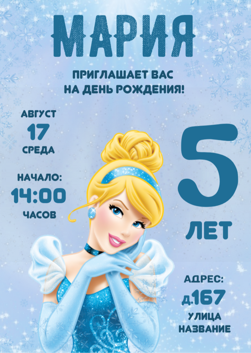 Цифровой вариант приглашения на День рождения, будет готов к отправке в мессенджерах или по электронной почте для самостоятельной печати или приглашения гостей в электронном виде.