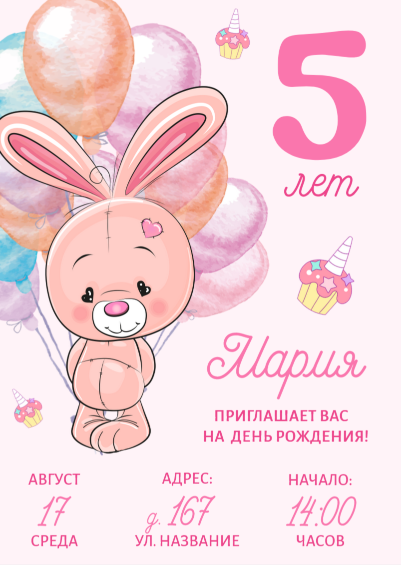 Цифровой вариант приглашения на День рождения, будет готов к отправке в мессенджерах или по электронной почте для самостоятельной печати или приглашения гостей в электронном виде.