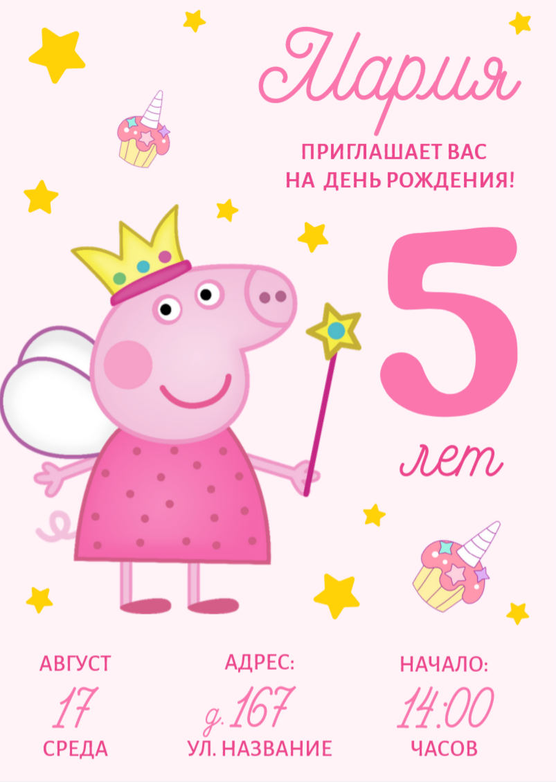Цифровой вариант приглашения на День рождения, будет готов к отправке в мессенджерах или по электронной почте для самостоятельной печати или приглашения гостей в электронном виде.