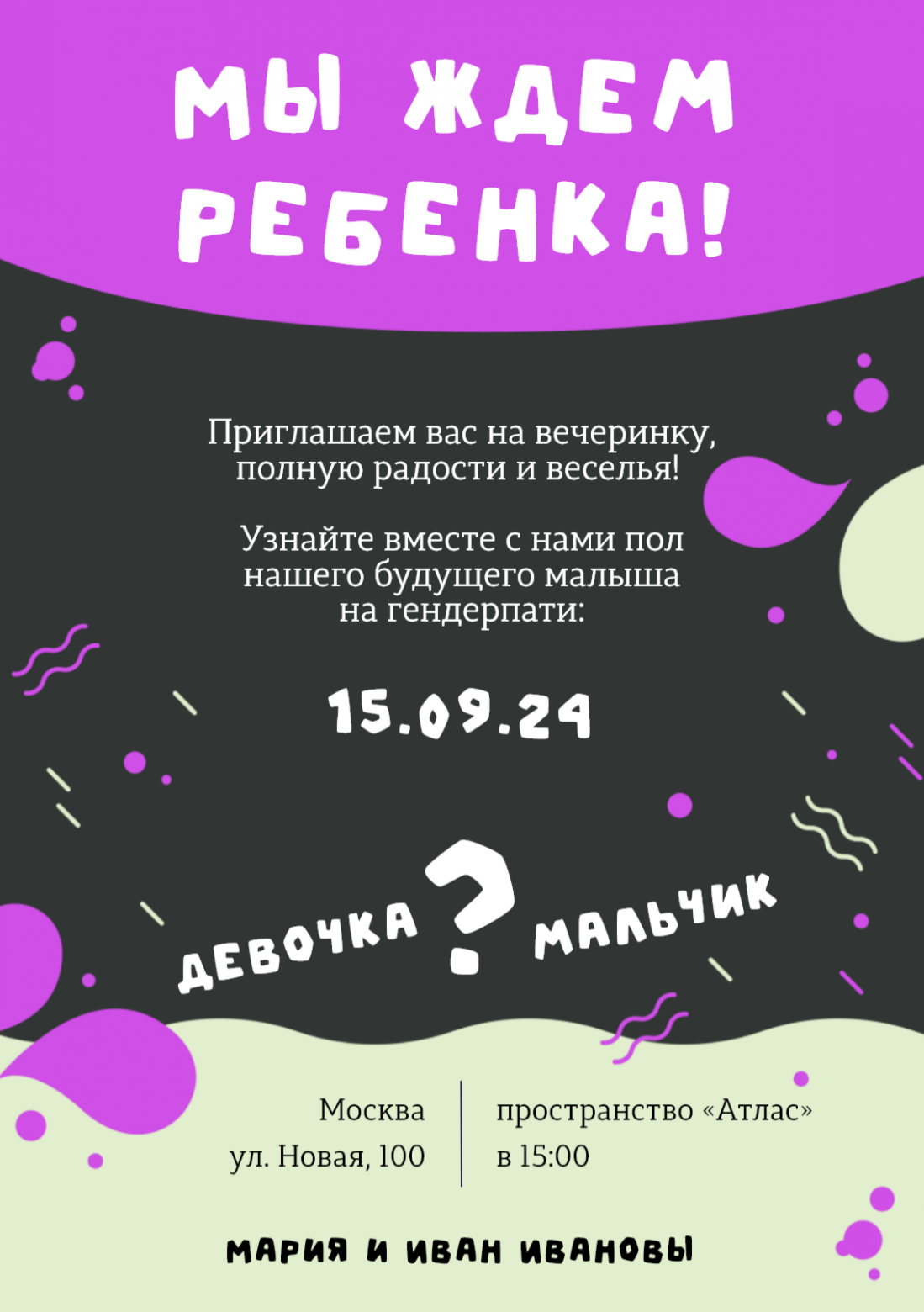 Приглашение на гендер-пати – это не просто формальность, а важный элемент создания атмосферы ожидания и предвкушения радостного события. Это ваш шанс поделиться волнением с близкими и друзьями, пригласив их разделить с вами момент открытия пола вашего будущего ребенка.