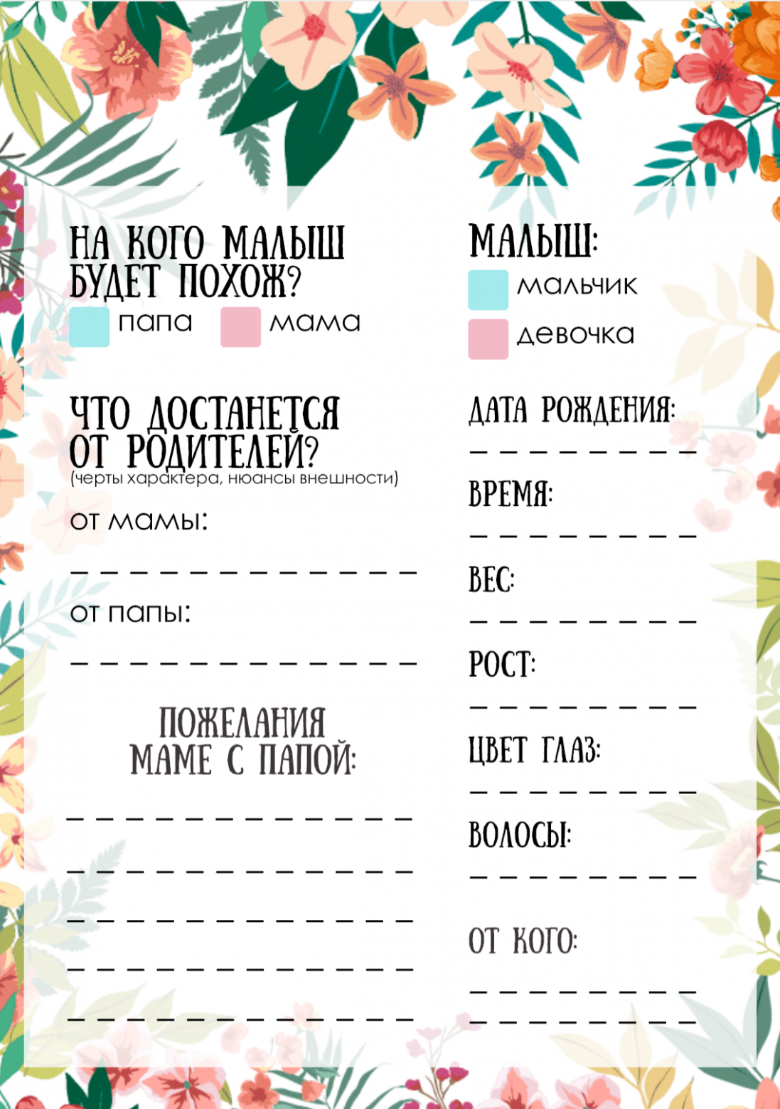 Развлеките гостей и создайте атмосферу: Анкеты добавят интерактивности вашему празднику. Гости с удовольствием заполнят их, делясь своими мыслями и предсказаниями о поле малыша.