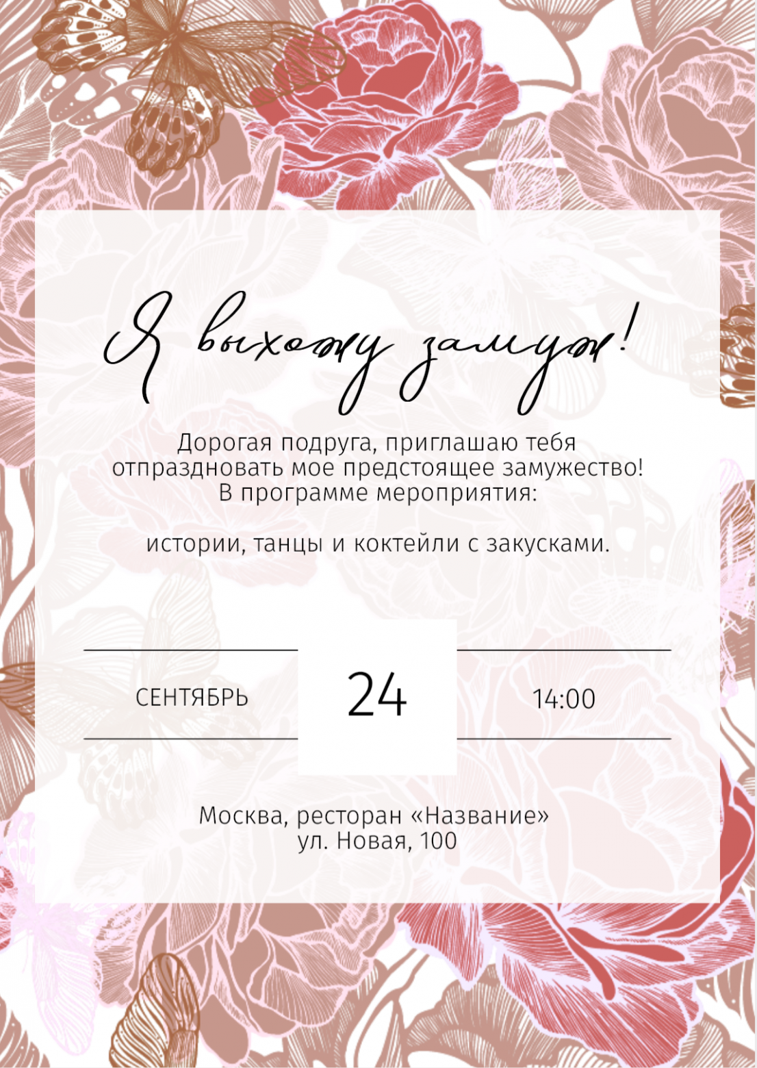 Приглашение на девичник, в цифровом формате