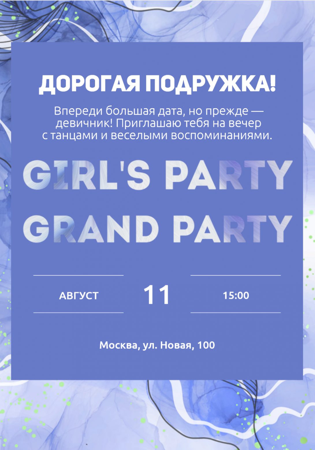 Мечтаете о девичнике, который запомнится на всю жизнь? Хотите собрать самых близких подруг, разделить радость предстоящего события и создать атмосферу праздника еще до дня свадьбы? Тогда забудьте о скучных сообщениях и одинаковых открытках! Представляем вам цифровое приглашение на девичник, которое станет ярким началом вашего незабываемого приключения. Отправьте его близким или распечатайте самостоятельно, если вам более удобен печатный формат.